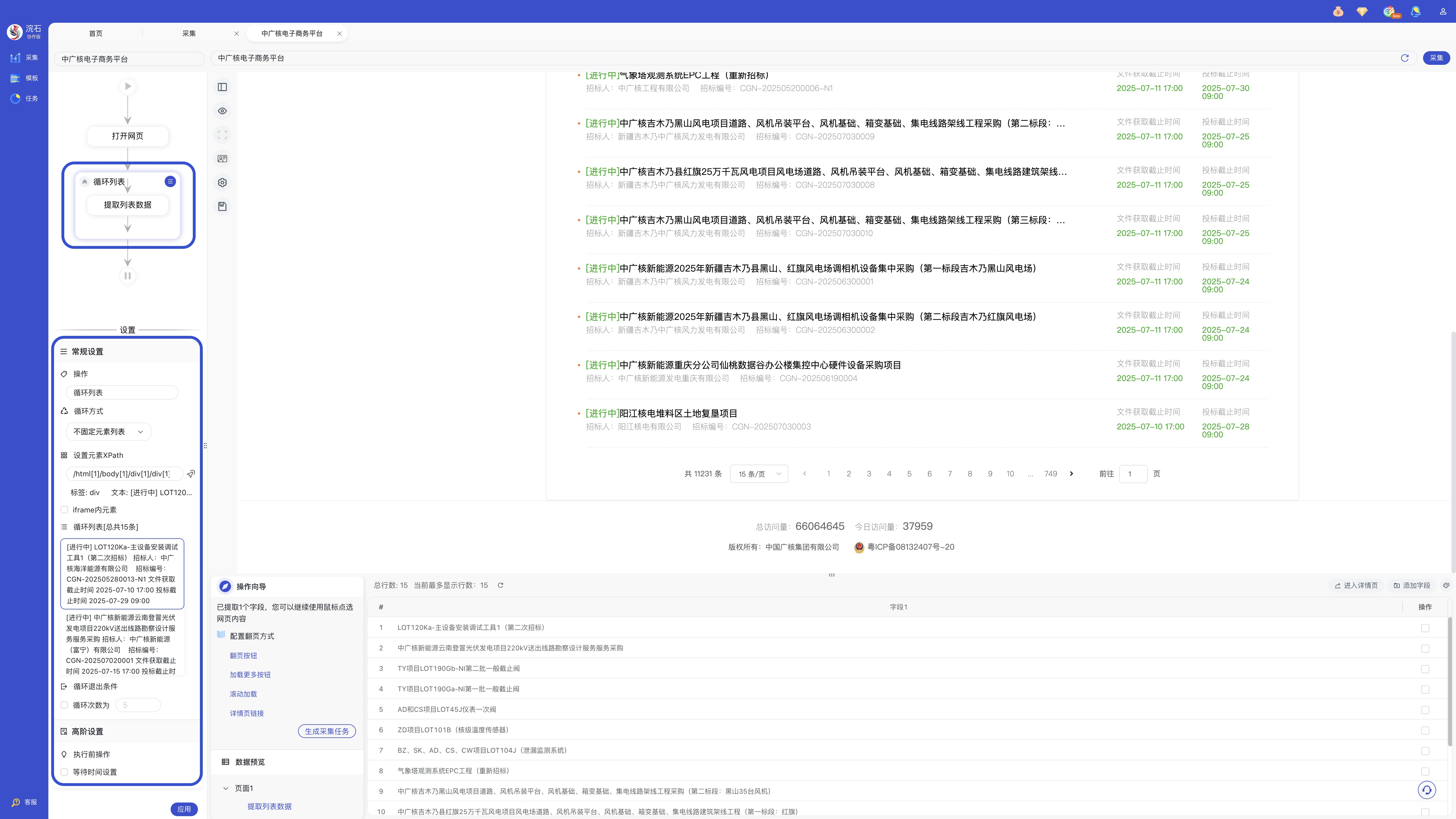 您可以点击侧边栏或下方操作向导的「元素智能识别」按钮,智能识别网页中的结构化数据。