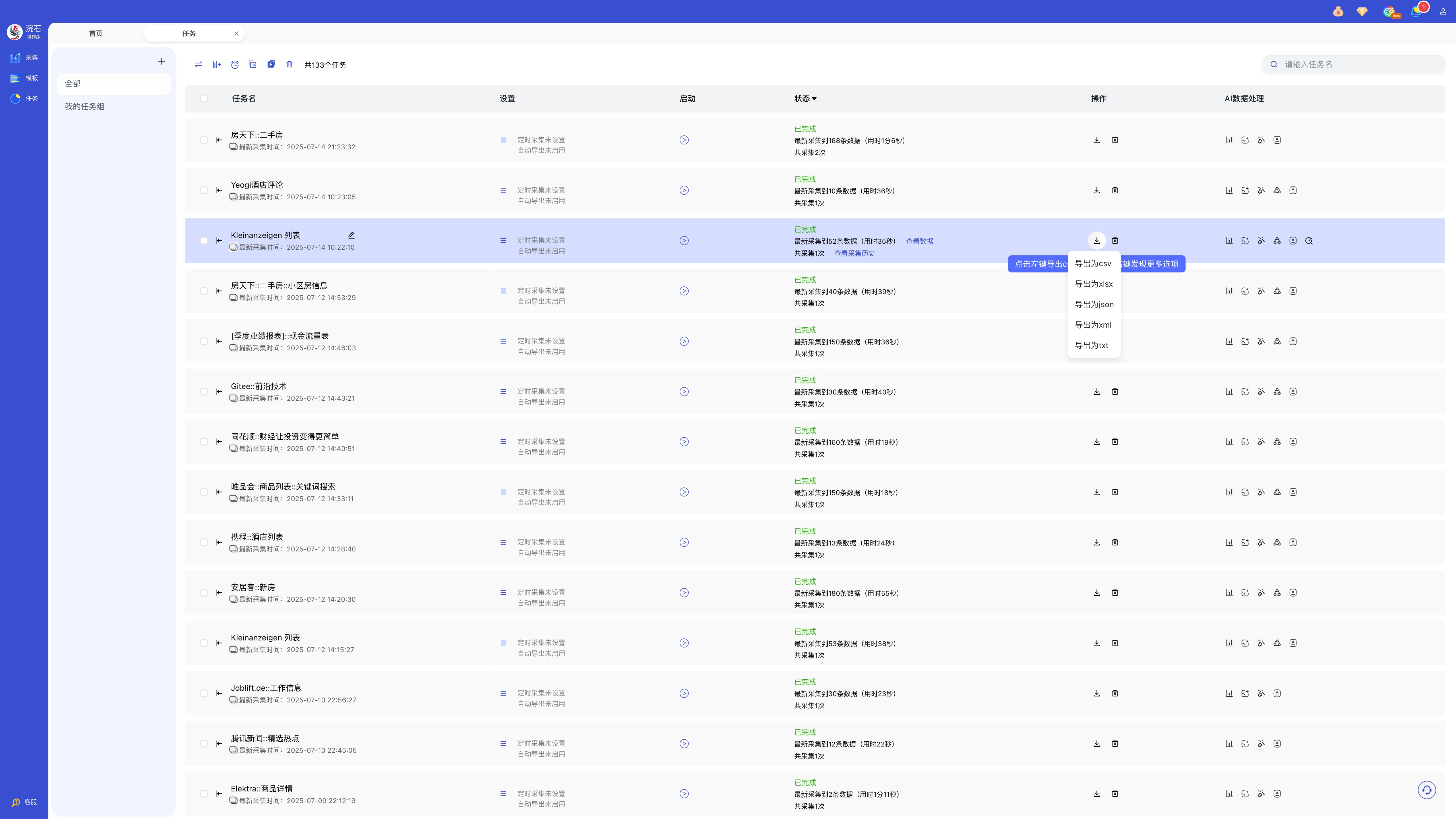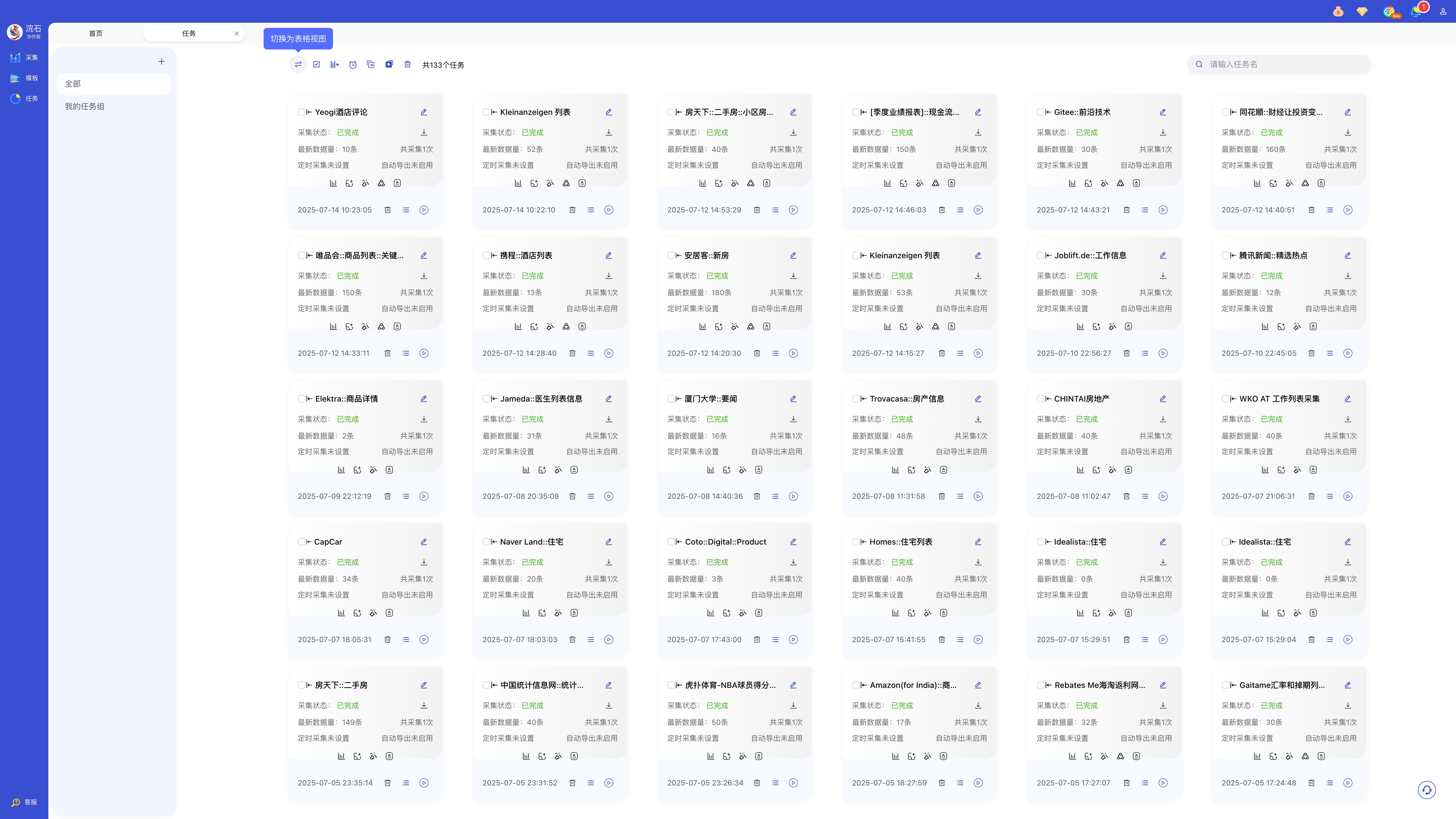 特别提醒:采集完成的数据会保存至「任务」模块,随时可再次查看或导出。