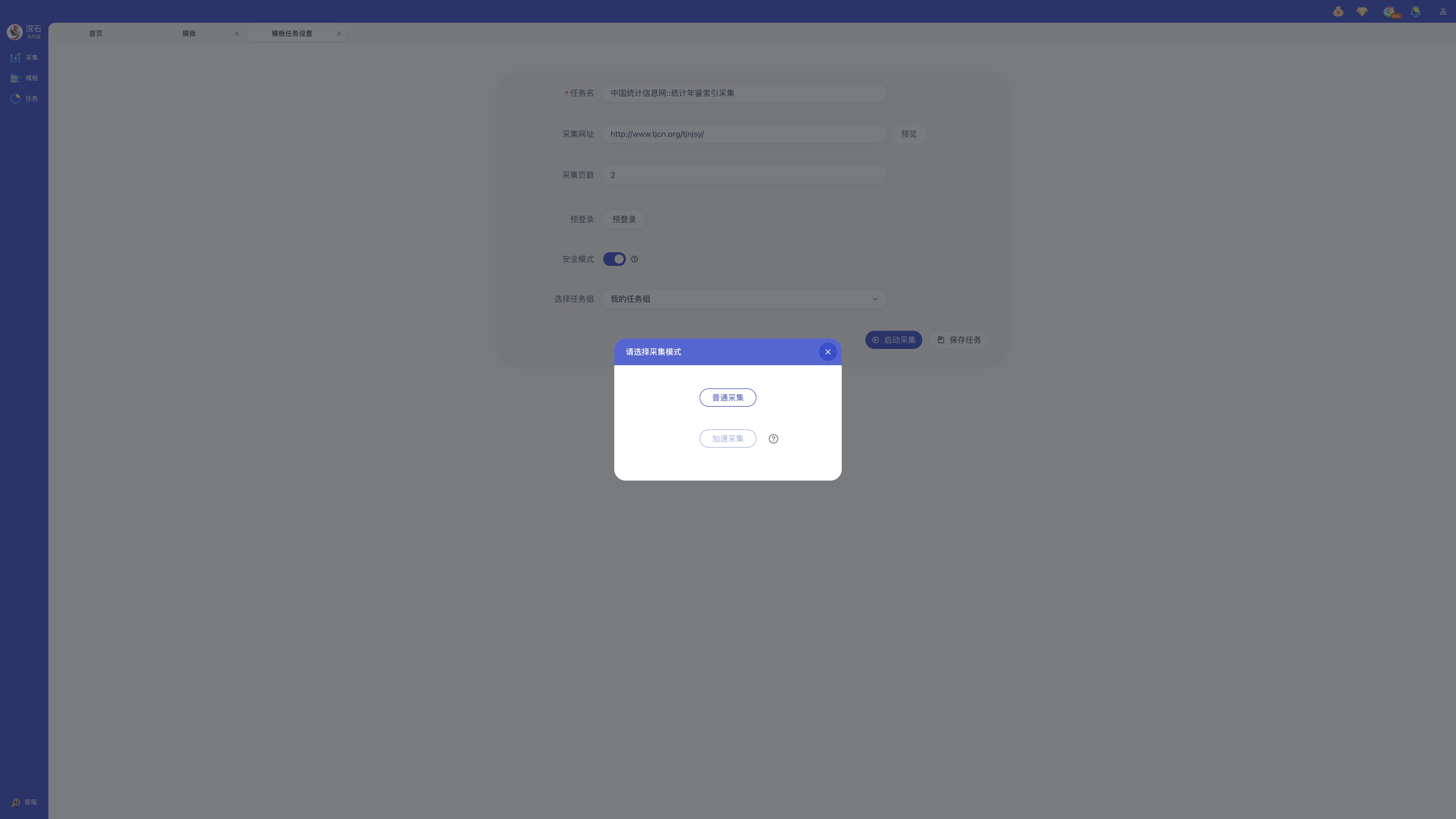 步骤三:点击「普通采集」/「加速采集」启动任务。