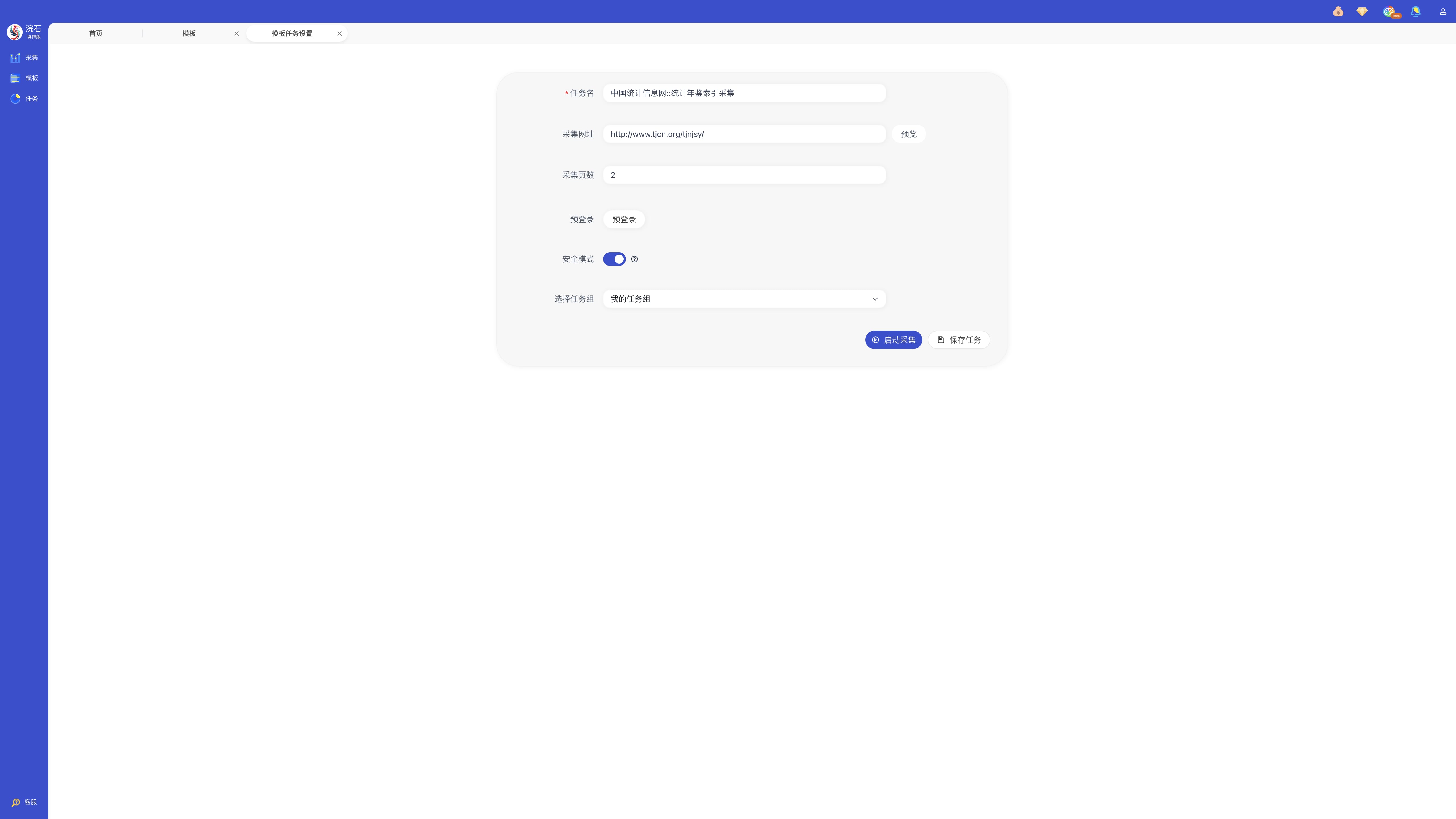f. 保存:保存采集任务,可到「任务」模块查看。