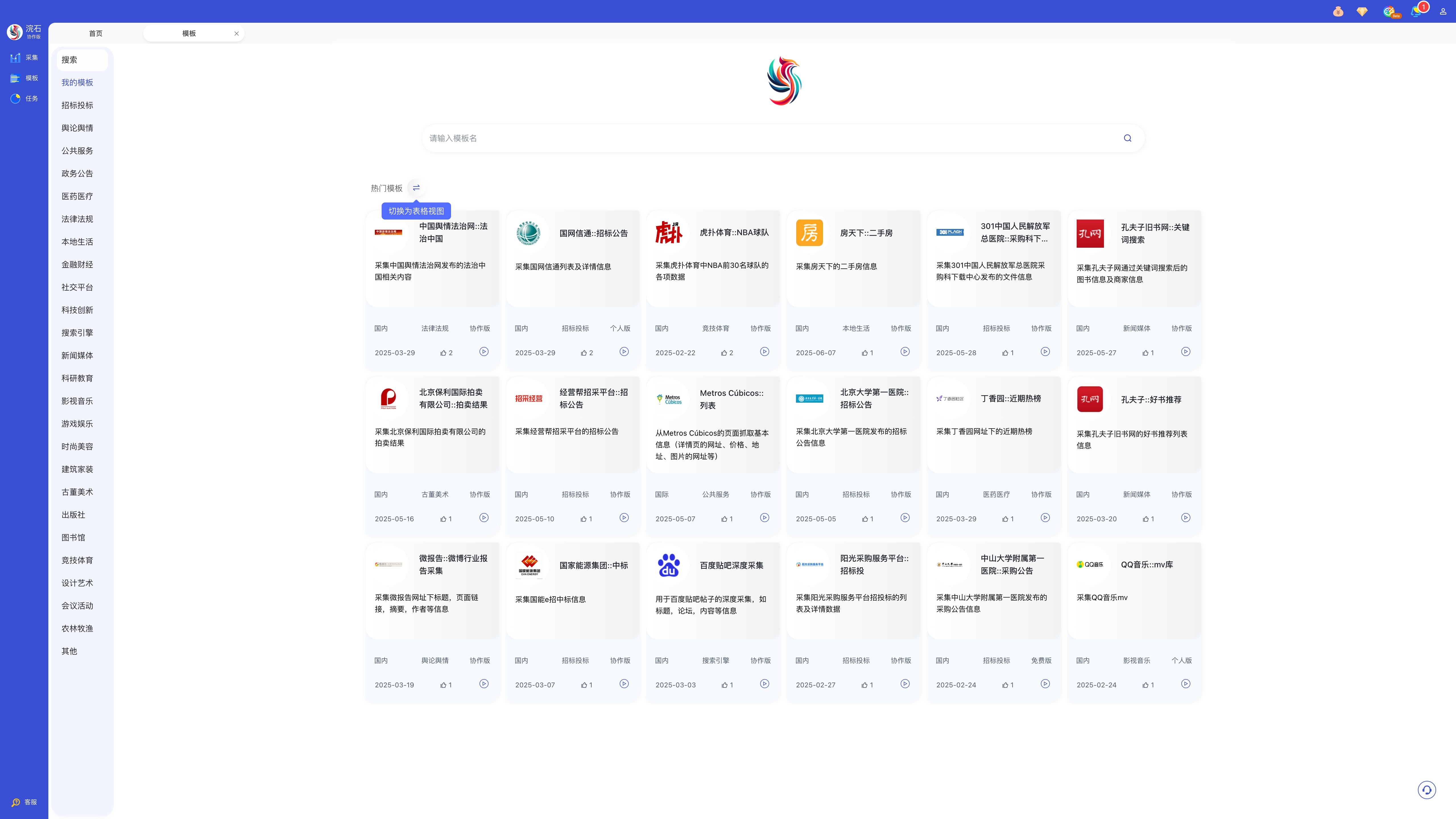 b. 采集模板:精选热门模板,可直接点击「开始采集」或查看更多模板。