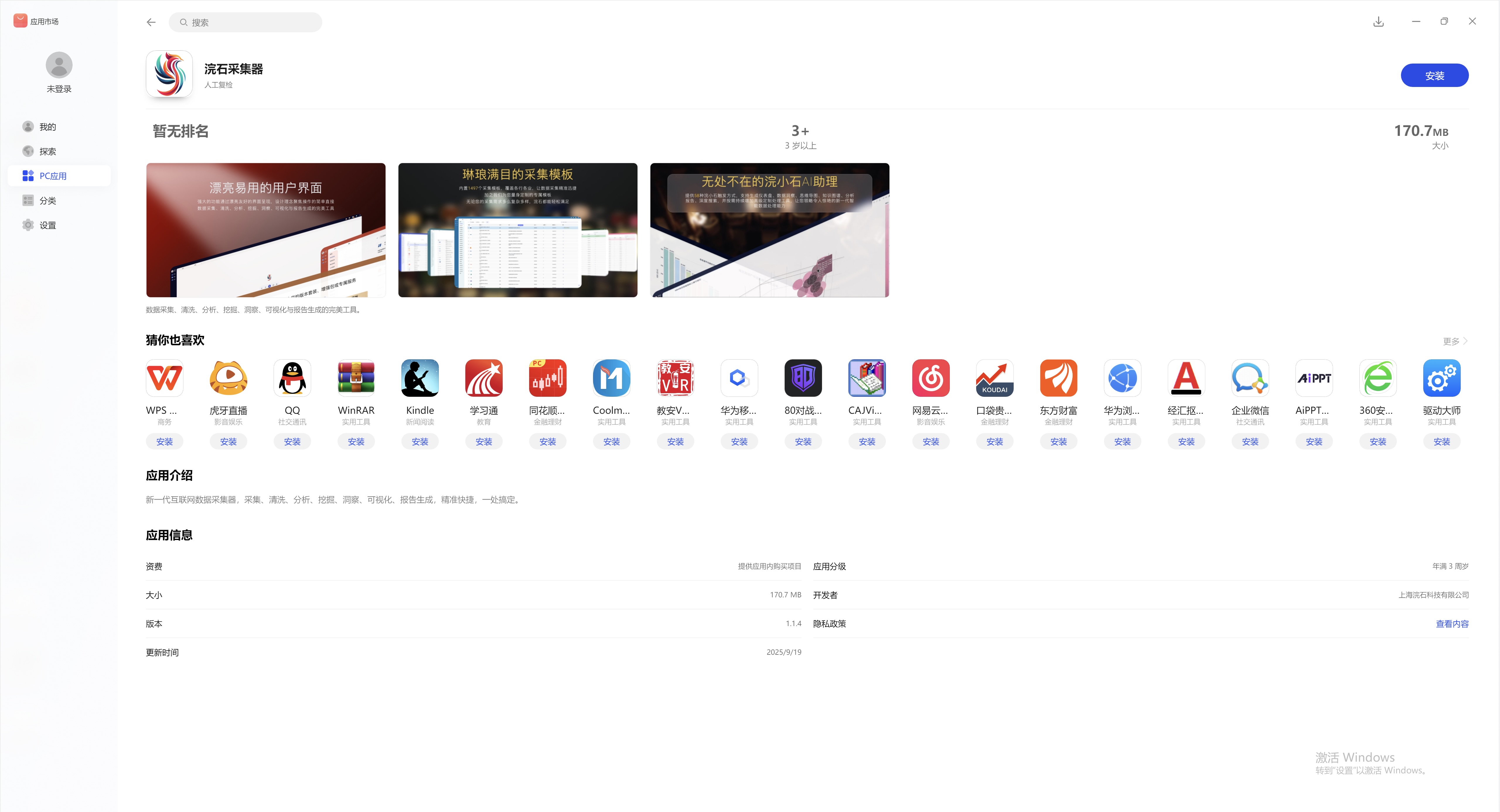 - Windows 系统自带商店,您可直接在 Microsoft Store 桌面客户端或 Web 端商店页面搜索“浣石采集器”并下载安装。