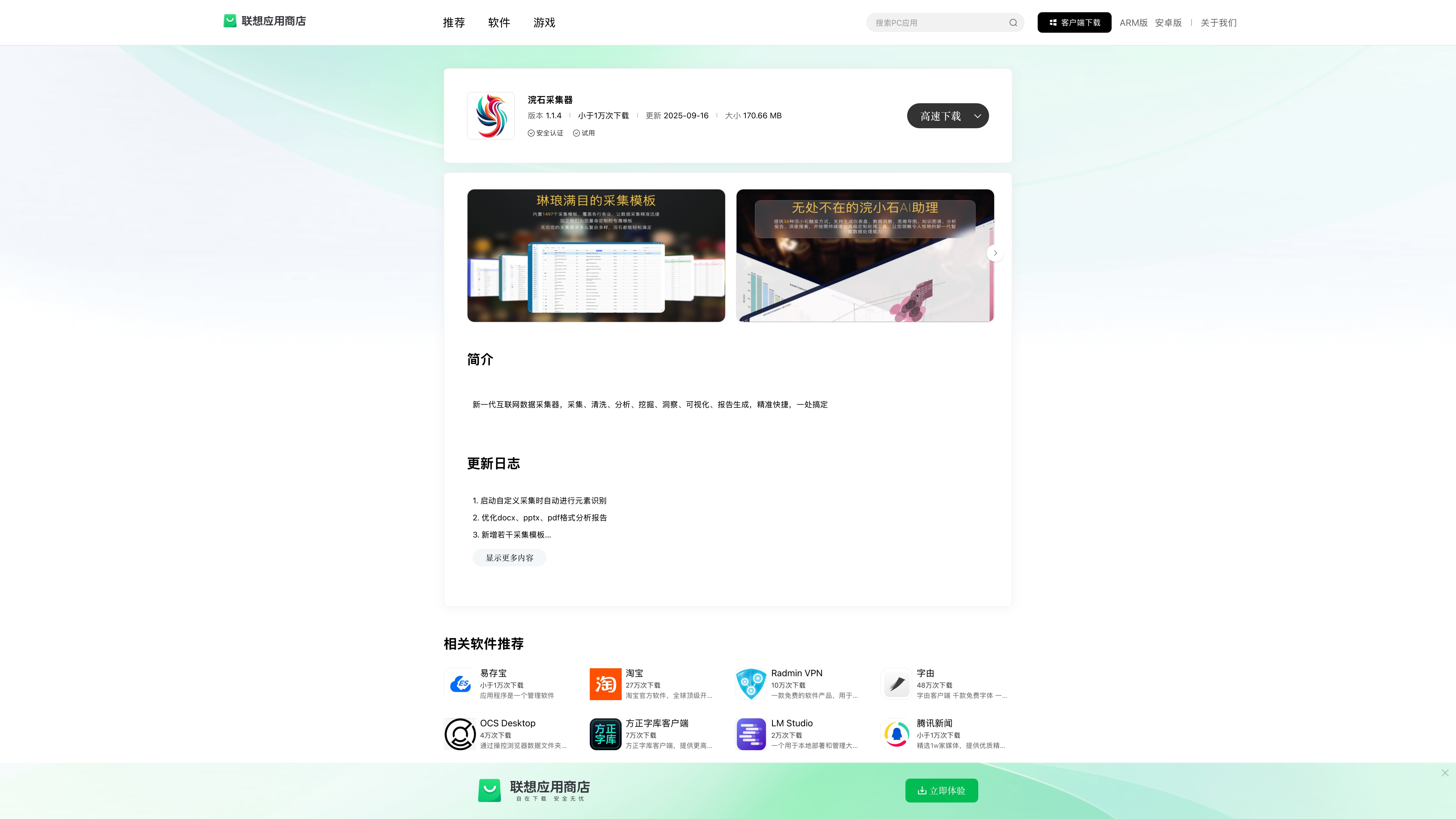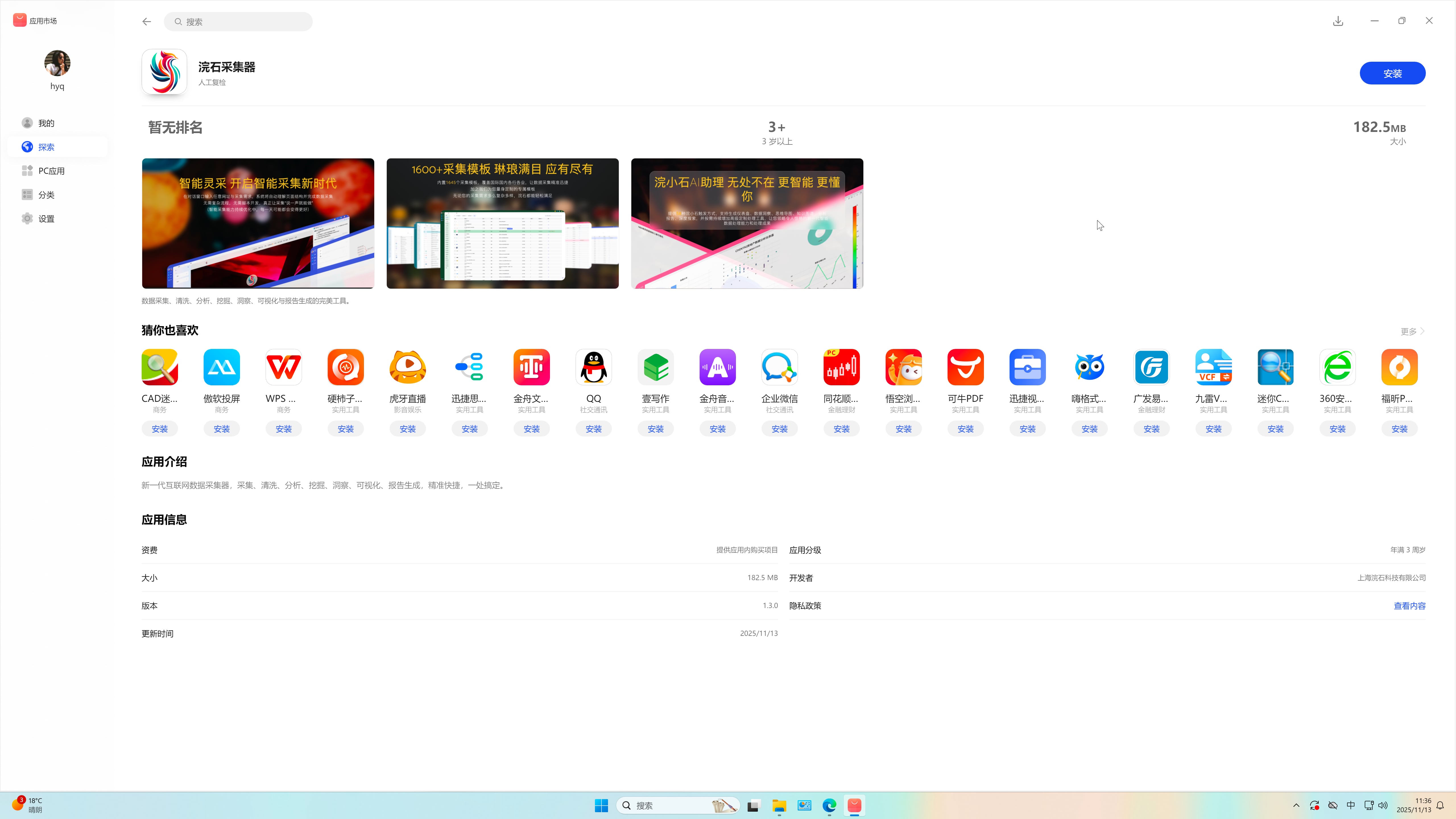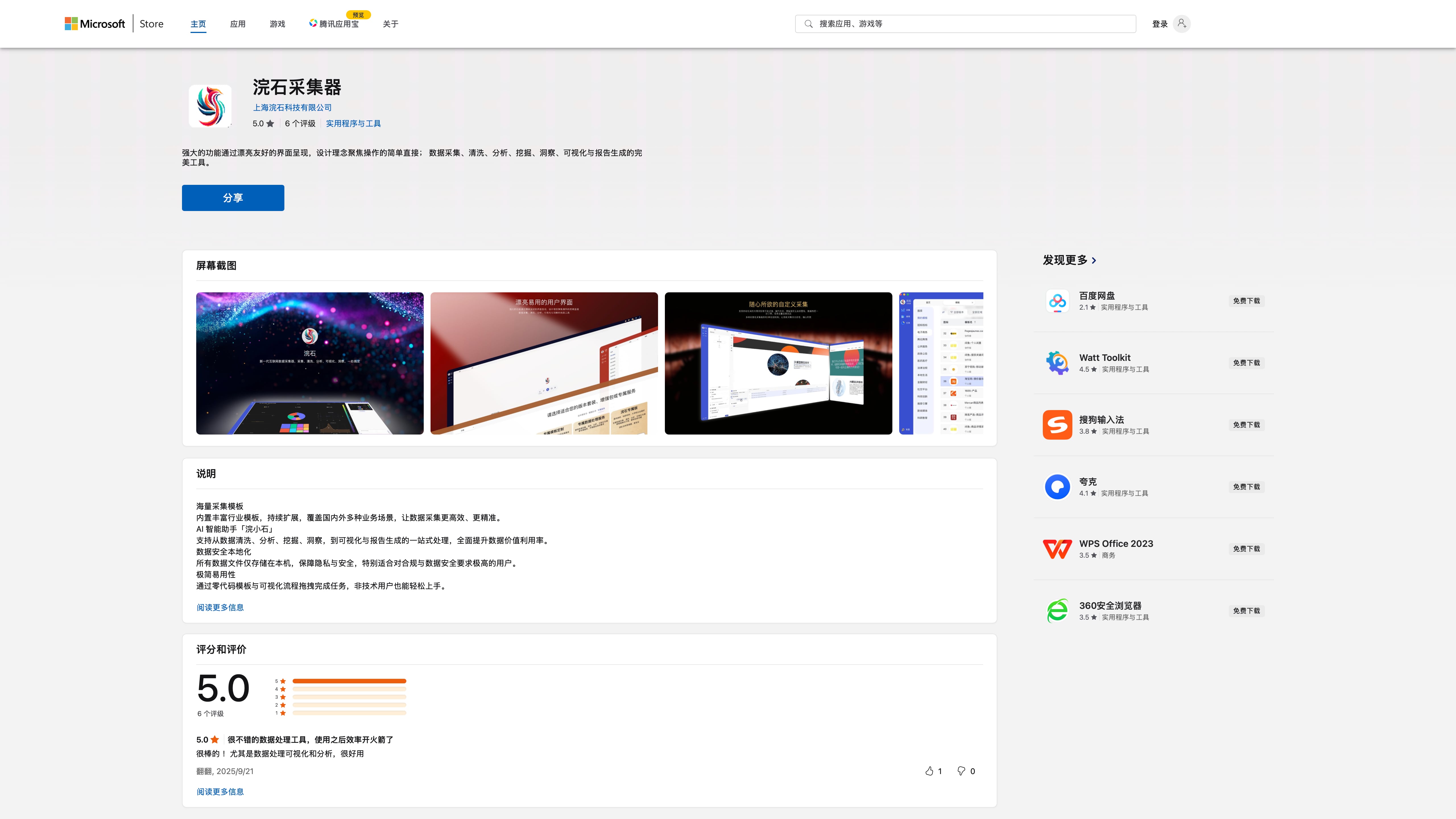 - Windows 系统自带商店,您可直接在 Microsoft Store 桌面客户端或 Web 端商店页面搜索“浣石采集器”并下载安装。